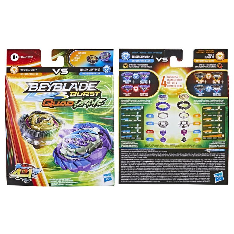 CONTROLAR O PODER QUADDRIVE: Beyblade Burst QuadDrive lança você no futuro de Beyblade com o primeiro pião 4 em 1 Beyblade! Os piões podem ser configurados de 4 modos, permitindo que se personalize como nunca antes! ; 2 PIÕES PERSONALIZÁVEIS: Inclui pião Beyblade Burst QuadDrive Wrath Fafnir F7 eBerserk Linwyrm L7. Pode-se personalizar nos modos Core e Apex, e modos Core+ e Apex+ para mudar o tipo; RUMO À VITÓRIA: Os jogadores devem buscar a melhor maneira de configurar o pião para a batalha na arena Beystadium QuadDrive (arena vendida separadamente, sujeita à disponibilidade); DIVERSÃO EM ARENAS DIGITAIS: Basta escanear o código na arena Beystadium QuadDrive para desbloquear o pião no aplicativo Beyblade Burst e se divertir em batalhas contra jogadores do mundo todo! ; LET IT RIP: Batalhas radicais com as arenas Beyblade Burst Beystadium, lançadores e piões numa grande jornada Beyblade (vendidos separadamente e sujeitos à disponibilidade).