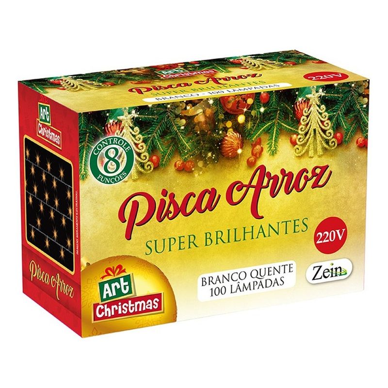 Pisca Pisca Arroz De Natal Decoração 8 Funções 100 Lâmpadas