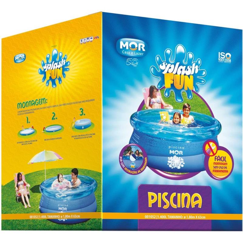 A dica do verão é a Piscina Splash Fun Mor, que é fácil de montar. Ela não possui estrutura e a lona é reforçada com uma tela tramada entre as lâminas, que dá maior resistência ao produto. É isto mesmo, a sua única estrutura é a água. Para facilitar ainda mais a montagem, a piscina Splash Fun acompanha DVD com as instruções de montagem. Tanto adultos como as crianças vão se divertir muito se refrescando na Piscina Splash Fun. Atenção: nunca deixe crianças sozinhas perto da água sem supervisão de um adulto.