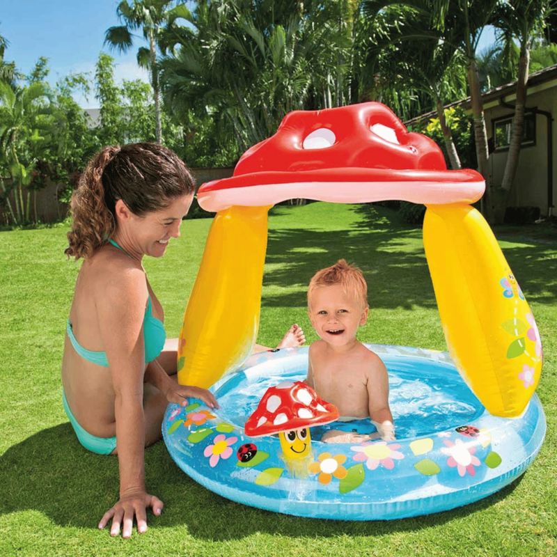 Na praia ou em casa os pequenos vão poder se refrescar brincando com a Piscina Inflável com Cobertura - 45 Litros - Cogumelo da Intex Os pequenos brincarem dentro e fora de casa, em qualquer clima. Para os dias quentes, pode-se encher com água ou com bolinhas para os dias mais amenos