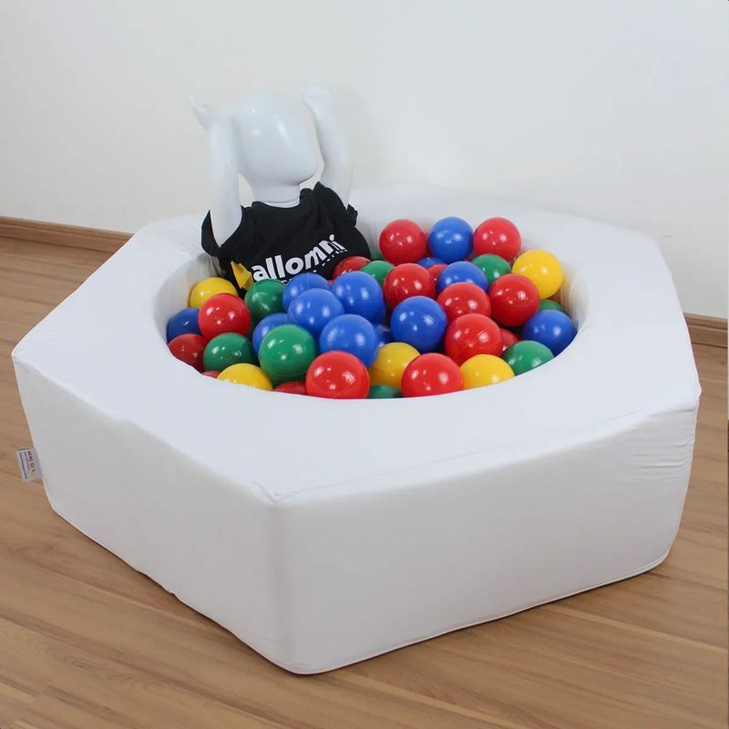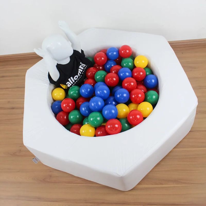 O Módulo Hexágono Piscina White Party da Brinquedos Mil transforma qualquer espaço em um ambiente lúdico, seguro e sofisticado. Seu design hexagonal em branco é perfeito para festas, eventos, escolas e espaços infantis modernos, unindo funcionalidade com estética clean. Com 1m de largura, 86cm de comprimento e 25cm de altura, oferece um espaço interno de 60cm de diâmetro, ideal para até 250 bolinhas (vendidas separadamente). Produzido em espuma de alta densidade, com revestimento impermeável, lavável e antialérgico, garante resistência, conforto e fácil higienização. Graças ao sistema de Moduvelcro incluso, pode ser usado de forma independente ou conectado a outros módulos, permitindo diferentes configurações criativas. Benefícios e Usos: Piscina de Bolinhas: diversão garantida com segurança. Caverna Geométrica: virado para baixo, vira abrigo lúdico. Circuito Modular: conecte vários hexágonos e crie percursos. Cantinho de Leitura: espaço aconchegante e sofisticado. Atividades Sensoriais: adicione almofadas ou tapetes texturizados. Especificações: Medidas externas: 1m x 86cm x 25cm Medida interna: 60cm de diâmetro Capacidade: até 250 bolinhas Idade recomendada: de 6 meses a 5 anos Acabamento: branco – linha White Party Todos os espumados Brinquedos Mil são fabricados artesanalmente, podendo apresentar pequenas variações nas medidas sem comprometer a qualidade ou segurança.
