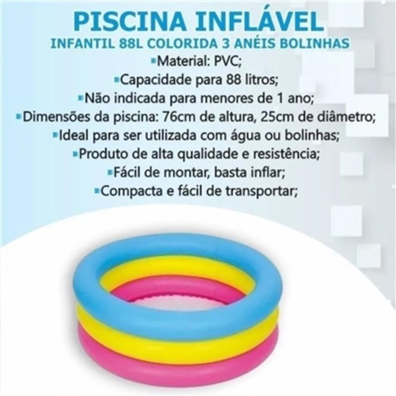 Piscina ideal para bebês e crianças brincarem na água com segurança e se refrescarem nos dias mais quentes.