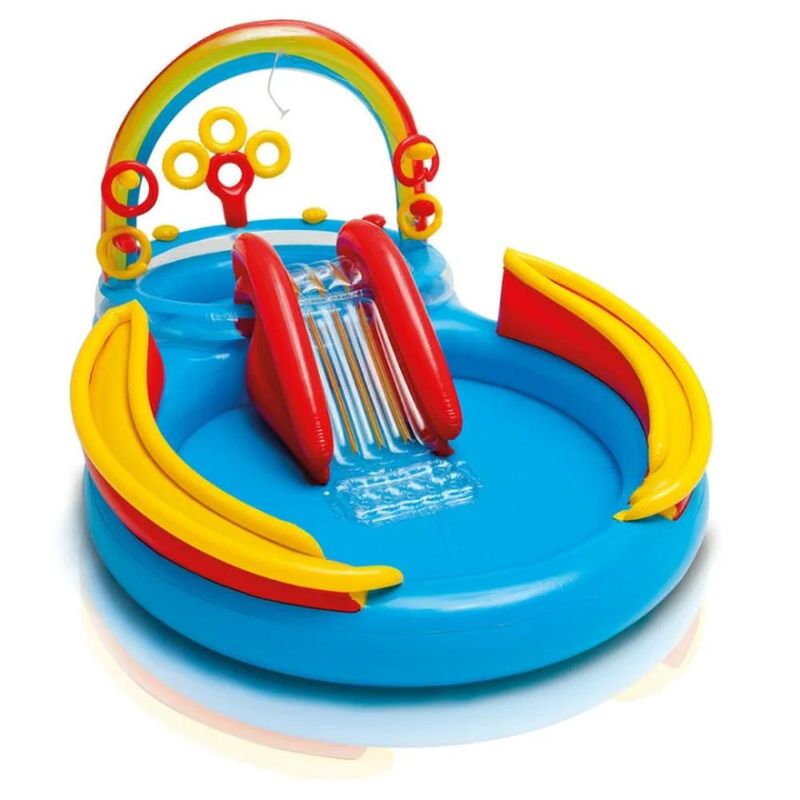-Faça com que a diversão dos mais novos se multiplique com esta piscina Intex infantil com escorregador. -A piscina playground arco-íris é um centro de jogo de água dividido em duas áreas que inclui diferentes acessórios para poder brincar com eles enquanto os pequenos dão um mergulho refrescante. -Vem com borrifador de água, conecta-se à mangueira de jardim para manter as crianças refrescadas no verão, tem plugues de drenagem no fundo das piscinas, acompanha kit de reparo e é muito fácil de inflar. -Conta com um escorrega com base acolchoada para amortecer a queda e aros infláveis encaixáveis. -Possui tampão de escoamento para facilitar ao encher e esvaziar. Com 6 bolas de polietileno branco e 4 aros infláveis para encaixar Características: Marca - Intex Cód. 57453 Tamanho - 297,18 x 193,04 x 134,62 cm Capacidade - 206 Litros Conteúdo: 1 piscina inflável, 4 argolas infláveis, 6 bolinhas e 1 adesivo de reparo;
