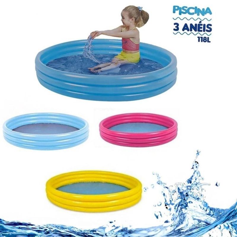 ESPORTESPRAIA E PISCINAPISCINAS PLÁSTICASPISCINA INFLAVEL 3 ANEIS INFANTIL BEBE GRANDE COLORS 99CM MENINO MENINA Amarelo