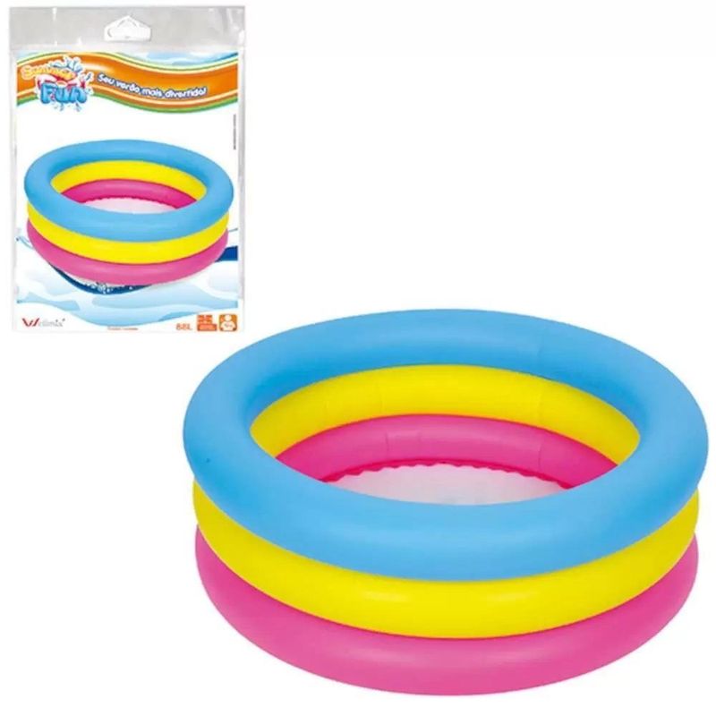 PISCINA INFLAVEL 3 ANEIS INFANTIL BEBE GRANDE COLORS 99CM MENINO MENINA Amarelo