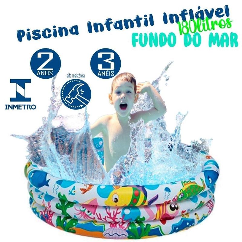 Mergulhe na diversão com seus filhos, pois a piscina tem o design super legal do fundo do mar, como se estivesse nadando com os peixes. A piscina Inflável tem capacidade para 180 litros, ela é de três aneis, sua composição em pvc, ele é leve, de alta resistente a rasgos. Tome somente o cuidado necessário para não estragar, a piscina aguenta muito bem a brincadeira. Material de boa qualidade.