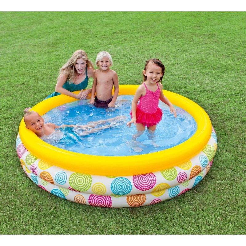 Na praia ou em casa os pequenos vão poder se refrescar brincando com a Piscina Redonda Inflável - Desenhos Espirais da Intex Os pequenos brincarem dentro e fora de casa, em qualquer clima. Para os dias quentes, pode-se encher com água ou com bolinhas para os dias mais amenos.