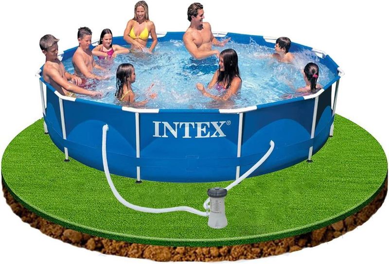 Projetada para resistência, esta piscina é suportada por estruturas de aço fortes e duráveis que são revestidas a pó para resistência à ferrugem e beleza. As paredes laterais laminadas super resistentes e triplas são reforçadas com uma faixa ao redor para manter as pernas da estrutura firmemente no lugar. Esta piscina fará do seu quintal o lugar para estar durante todo o verão, pois sua família pode relaxar e brincar.