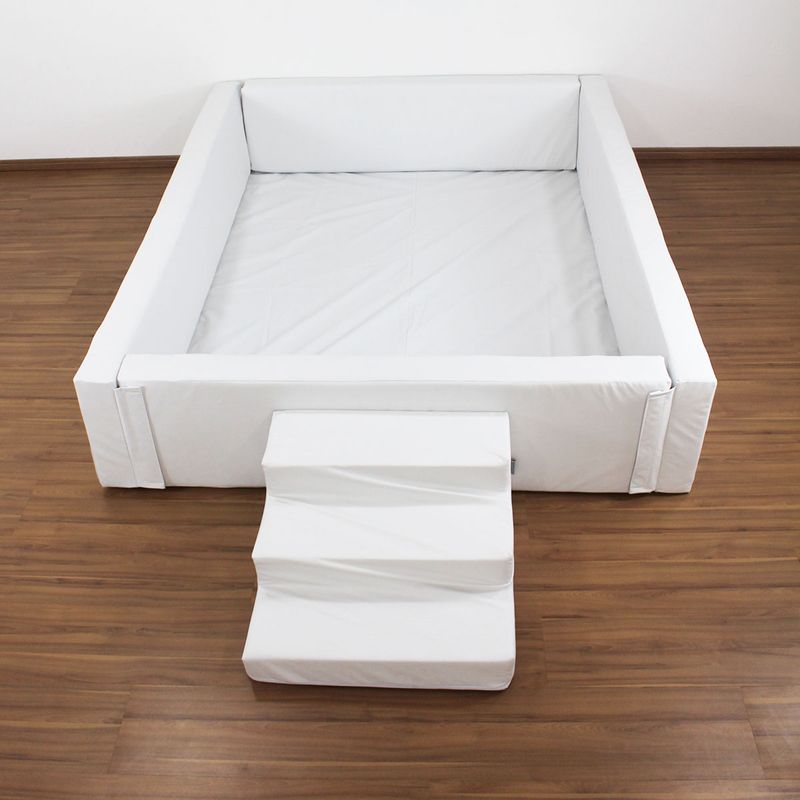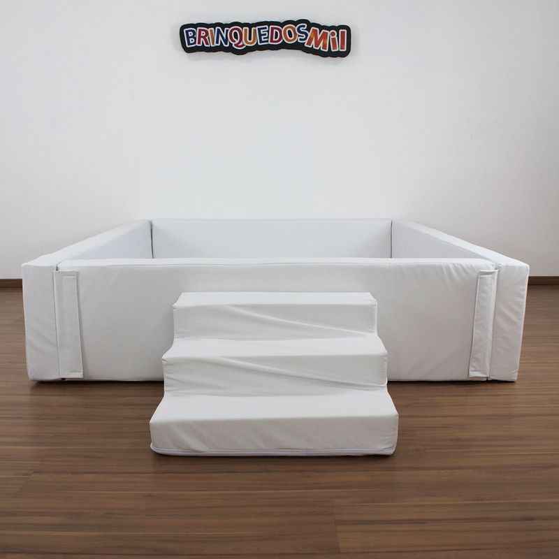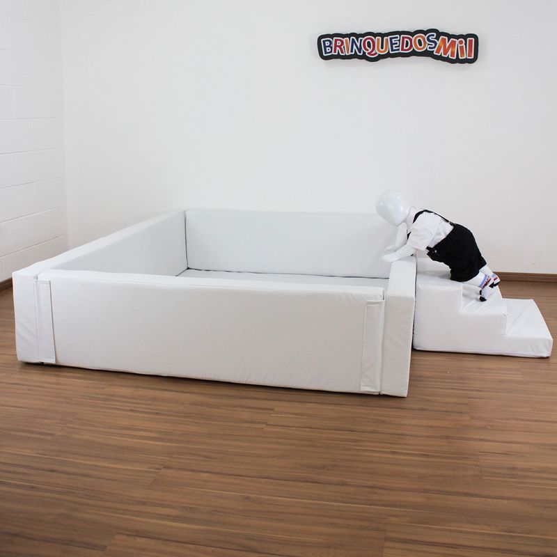Além disso, a Piscina Espumada Quebra-Cabeças também inclui uma escada de três degraus, que auxilia no desenvolvimento da coordenação motora e do equilíbrio das crianças. Com medidas de 1m40 de largura, 1m80 de comprimento e 40cm de altura, as bordas tem 10cm de espessura, e esta piscina pode ser utilizada de 2.000 à 2.500 bolinhas (vendidas separadamente), oferecendo muita diversão com segurança.