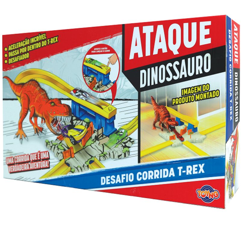 A diversão está garantida com a Super Pista Corrida Animal Dinossauro da Toyng. O desafio é passar ileso por um terrível Dino com presas afiadas. A brincadeira começa colocando o carrinho na plataforma que gera um impulso muito forte ao ser lançado. Será que o Dinossauro vai vencer? Desafie o dinossauro, e vença essa corrida!