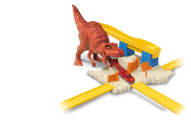 - Contém: 1 T-Rex, 1 carrinho, 3 pistas,1 pista curva,1 suporte para pista,8 conectores,1 lançador,1 pacote com placas e sinalização diversas.