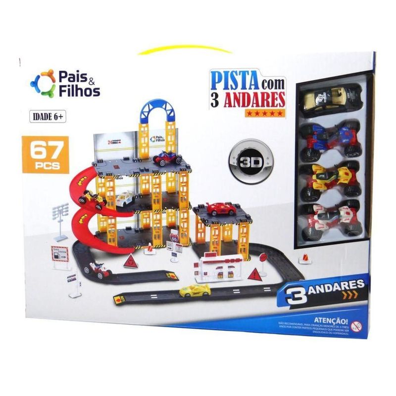 A brincadeira com carrinhos de brinquedo chegou a outro nível com a Pista com 3 Andares da Pais e Filhos. Essa pista com garagem é acompanhada de um carrinho e três quadrículos em miniatura para a brincadeira ser completa. Uma pista com 3 andares, curvas iradas e vários acessórios para a criançada se divertir de montão. São 67 peças para montar essa pista de percurso de brinquedo e soltar a imaginação.