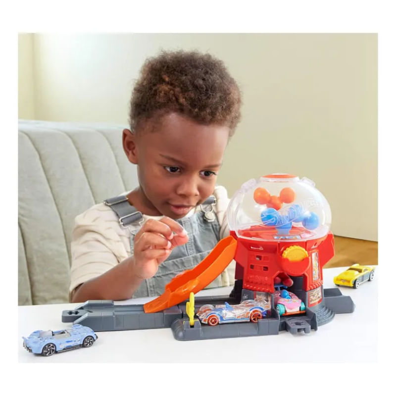 PISTA DE BRINQUEDO HOT WHEELS - LOJA DE DOCES - MATTELA Hot Wheels City Loja de Doces traz diversão inspirada em uma charmosa candy shop do centro da cidade, onde os carrinhos podem viver aventuras doces e cheias de imaginação. Com detalhes temáticos coloridos, o conjunto permite criar histórias criativas e dinâmicas, tornando a brincadeira ainda mais divertida. Além disso, pode ser conectado a outras pistas e conjuntos Hot Wheels City por meio do sistema Speed Snap Track, expandindo a cidade e oferecendo infinitas possibilidades de corridas e desafios. Ideal para colecionadores e crianças que adoram ação e cenários personalizados. Inclui 1 veículo Hot Wheels.
