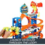 PISTA DE BRINQUEDO HOT WHEELS - SUPER ULTIMATE GARAGEM - MATTELPrepare-se para uma experiência completa de adrenalina, corridas e acrobacias com o Hot Wheels City Ultimate Garage, um playset imenso com quatro níveis cheios de pistas, loopings, lançadores e desafios que estimulam a criatividade e a competição entre os pilotos. No primeiro andar, a garagem conta com lava-rápido equipado com rolo de espuma, mangueiras móveis e desvios estratégicos, além de múltiplos pontos de conexão que permitem integrar outros conjuntos Hot Wheels, expandindo o universo de brincadeira. Um elevador de dois carros leva os veículos até o segundo nível, de onde podem ser lançados em corridas lado a lado, garantindo manobras radicais e muita emoção. No terceiro nível, os carros percorrem loopings e podem escolher caminhos diferentes pelos desviadores, estimulando decisões estratégicas e raciocínio espacial durante a brincadeira. No topo da garagem, um dragão faminto por carrinhos desafia os pilotos a lançarem seus veículos de maneira precisa; se o lançamento falhar, o carro é devorado pelo dragão, que depois despenca em uma queda épica, tornando cada corrida imprevisível e divertida. O conjunto inclui dois veículos Hot Wheels, mas possui espaço para mais de 50 carros em escala 1:64, permitindo que a criança organize, armazene e amplie sua coleção. Com conectores adicionais, é possível integrar este playset a outras pistas e garagens Hot Wheels City, criando percursos ainda maiores e mais complexos. Cada detalhe do Super Ultimate Garage é projetado para estimular a imaginação, a coordenação motora e o espírito competitivo, proporcionando horas de diversão.