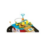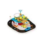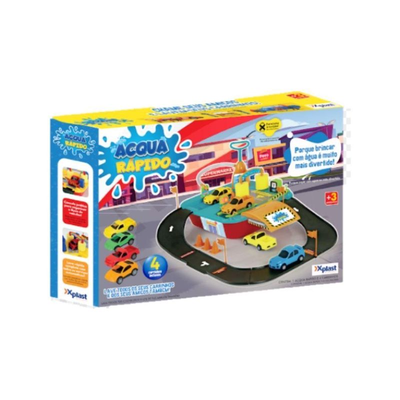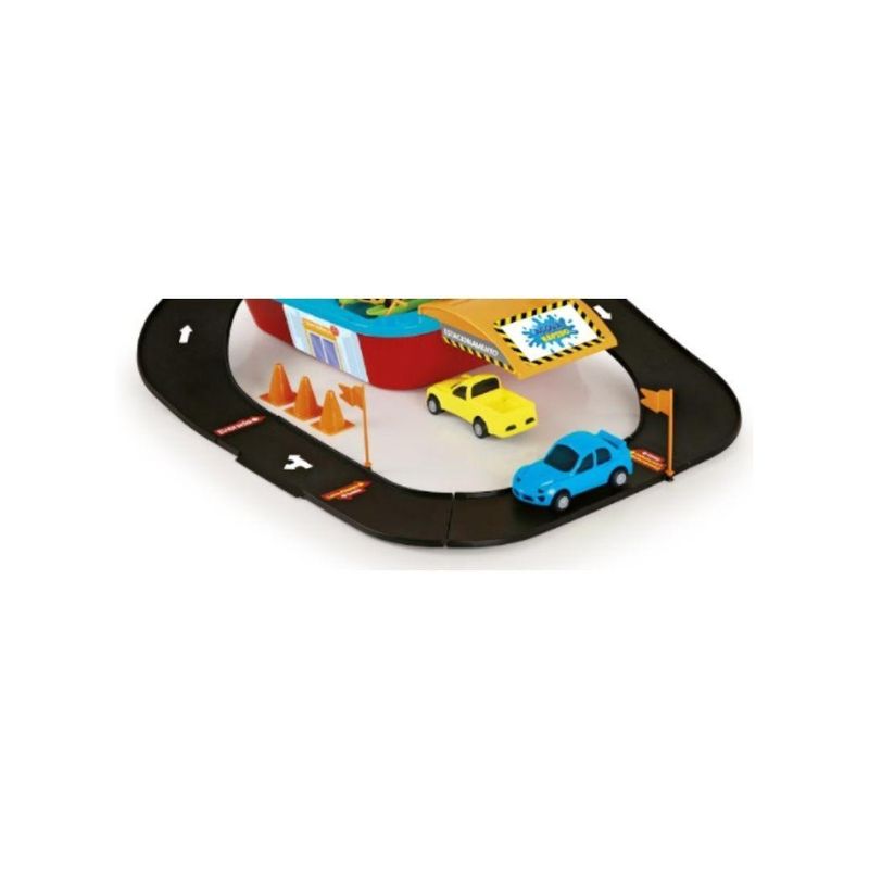 Acompanha 4 carrinhos coloridos, sendo 2 hatchbacks e 2 pick-up, 4 cones coloridos, super ducha, lava-rápido, rampa para troca de óleo, bomba de gasolina, cancela, rampa de acesso e 4 bandeirinhas.