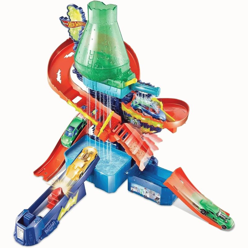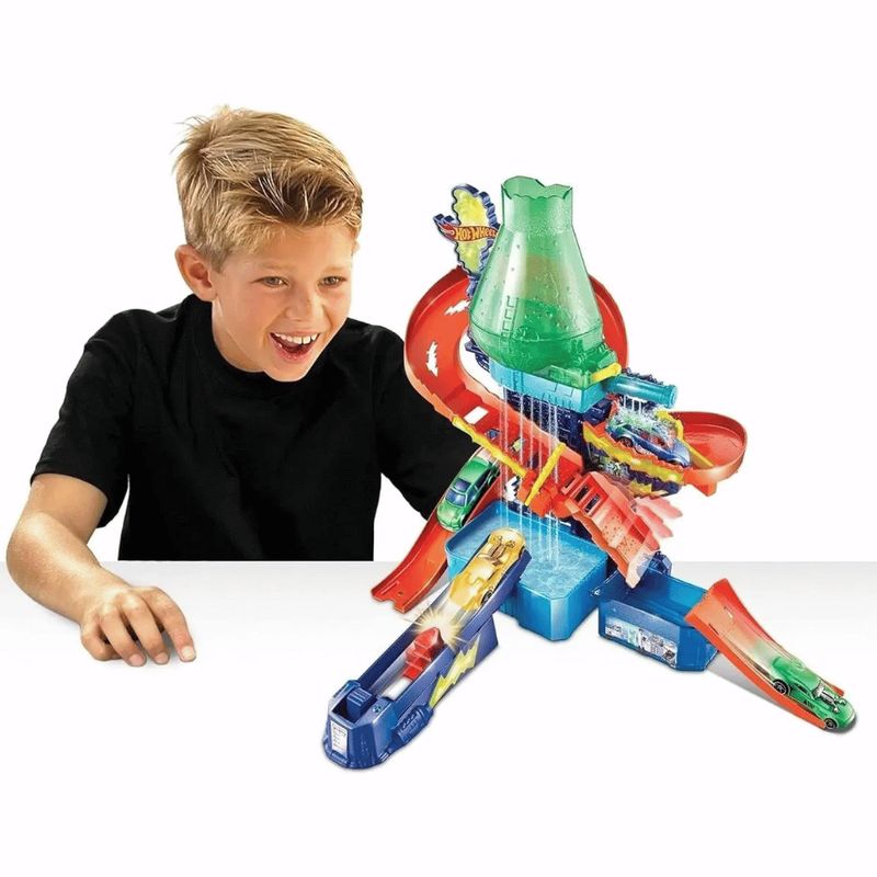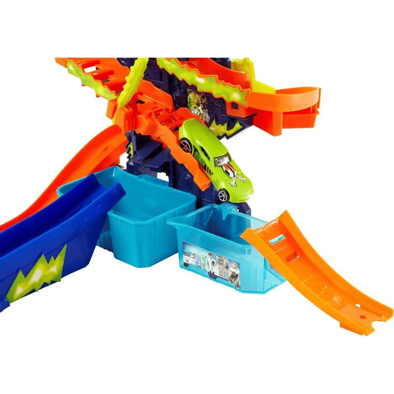 Descubra muita diversão com esta Estação Científica, onde loucas experiências com cores podem sair do controle! Um cientista maluco prendeu um carro Color Shifters sob a cachoeira de mudança de cor, e está experimentando todos os tipos de combinações insanas de cores! Você consegue ajudar o carro a escapar? Descubra neste passeio cheio de aventuras! Lance para a ação, correndo com o carro pela pista e liberte-o. Ah não! Parece que o cientista maluco encurralou você! Aperte a alavanca de liberação e solte o carro no tanque abaixo, para que sua cor volte ao normal. As crianças vão adorar a emoção ao tentar escapar do laboratório do cientista maluco, enquanto observam as mais piradas combinações de cores. Vem com três diferentes zonas de mudança de cor, além de um carro Color Shifters, para que as crianças possam se divertir assim que abrirem a caixa.