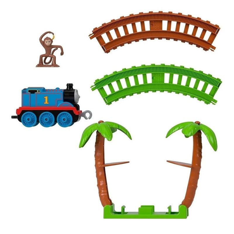 Contém: 1 Thomas em Metal (Push Along), 1 Macaco, 6 Pistas em Curva e 2 Palmeiras