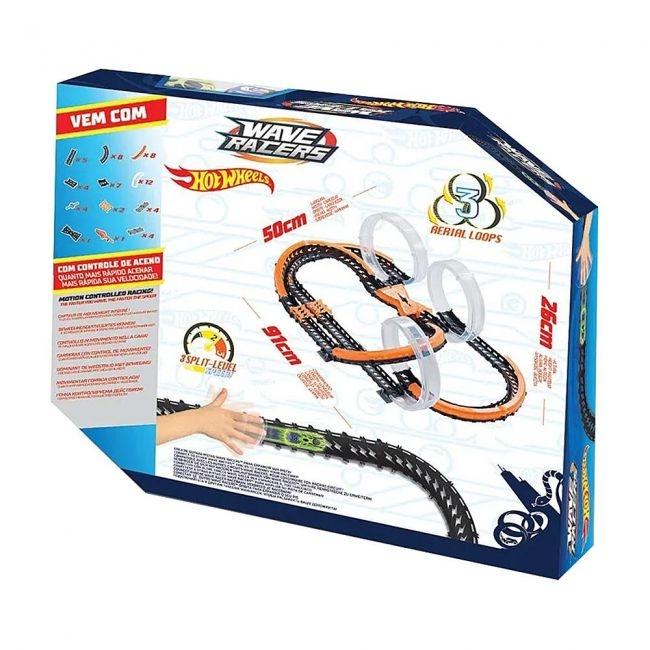 Acene MUITO para uma corrida MUITO rápida! Nesta alucinante pista, ganha quem acenar mais rápido com as mãos, em cima dos carrinhos Hot Wheels! No Hot Wheels Pista Wave Racers Triple Skyloop, basta posicionar os carrinhos dentro da pista, colocar a mão em cima do sensor e agitar de um lado para o outro rapidamente. Os carrinhos são ativados após pelo menos 15 movimentos realizados em 5 segundos. A velocidade dos Hot Wheels vai depender da rapidez dos movimentos. A pista Hot Wheels Wave Racers Triple Skyloop inclui 2 carrinhos movidos por sensores e peças conectáveis, que formam uma pista radical com 3 loops aéreos, e mede aproximadamente 91 cm por 50 cm, com 26 cm de altura. Cada carrinho requer 2 pilhas AA (não inclusas). As crianças vão adorar disputar corridas super radicais!