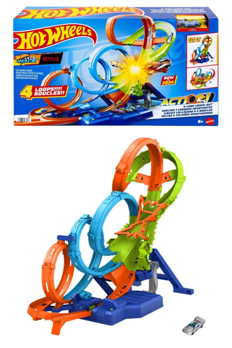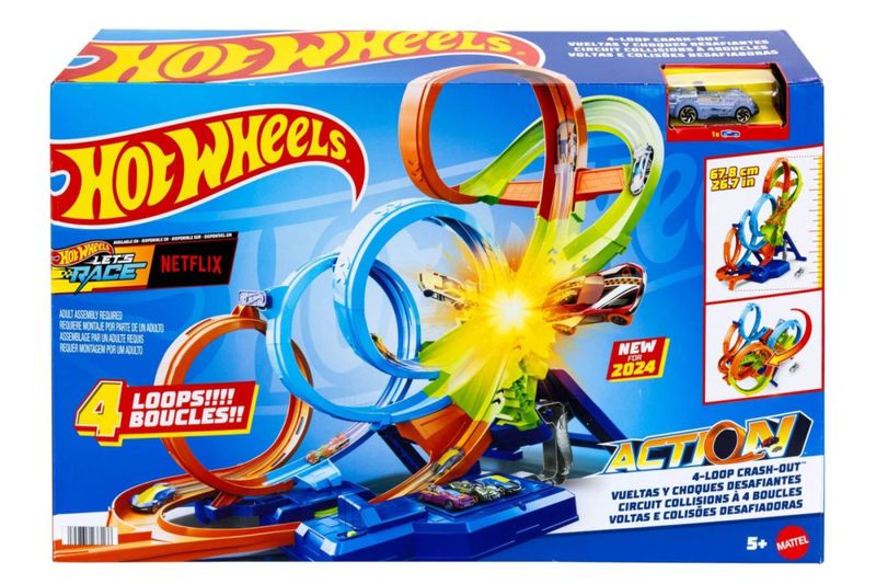 Faça acrobacias e colisões no conjunto de pistas Hot Wheels Action 4-Loop Crash Out!