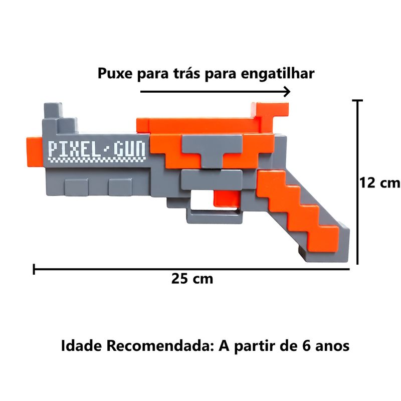 Lança Dardos Pixel Gun Infantil 5 Dardos de Espuma com Ventosa – Brinquedo Pixelado estilo Roblo Minecraf