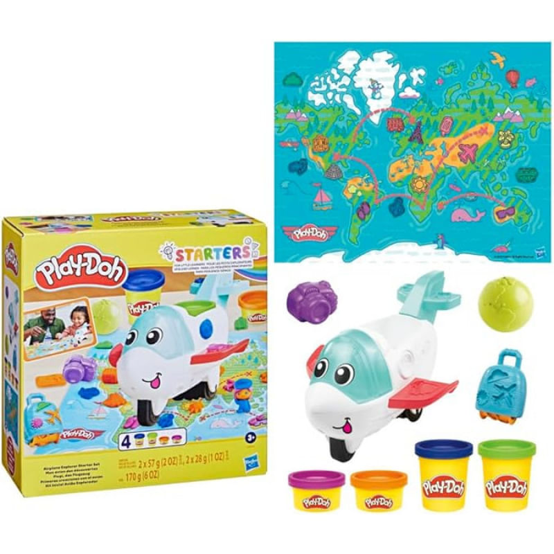 As crianças poderão dar asas à imaginação e viver uma aventura criativa com o conjunto de massinha Kit Inicial Avião Explorador Play-Doh! Este avião de brinquedo Play-Doh é uma opção super divertida para as crianças praticarem habilidades motoras finas, raciocínio criativo e exploração sensorial. As crianças podem modelar e combinar objetos no tapete de atividades, criar pilotos e passageiros de massinha para passear no avião e muito mais com 3 ferramentas e 4 cores de massinha Play-Doh. Feitos com material atóxico e de alta qualidade, os brinquedos criativos da Play-Doh são ótimos para projetos escolares e brincadeiras com a família e amigos. Eles estimulam a imaginação e as habilidades motoras e são excelentes presentes para crianças a partir dos 3 anos que amam arte e artesanato. Além disso, ajudam a imaginar e criar diversas aventuras!