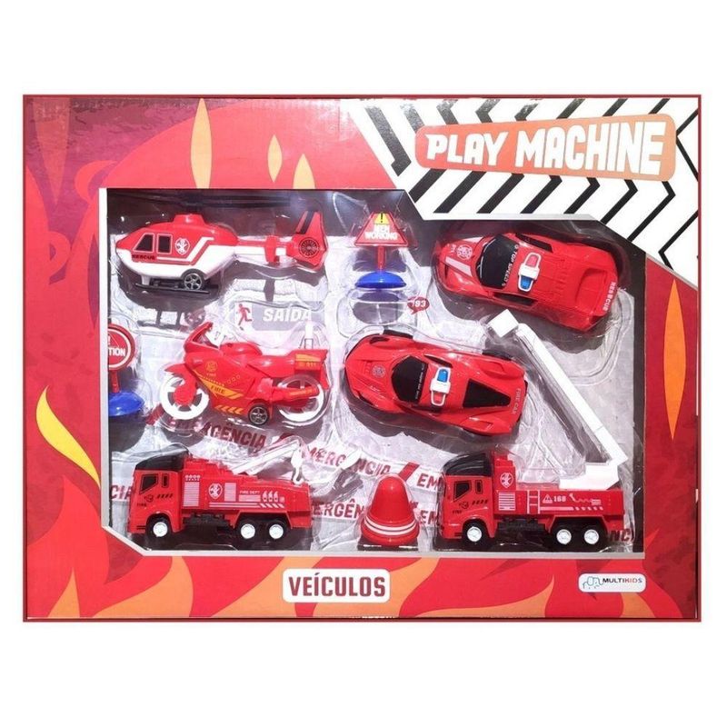 Play Machine Playset Veículos Bombeiro - MultikidsInformações do Produto:Play Machine Multikids, viva a experiencia de ter uma equipe de bombeiros completa para você. Brinque de fazer resgastes e apague incêndios, basta usar a sua imaginação para a sua brincadeira se tornar a mais divertida.Itens Inclusos: - 01 Caminhão de Bombeiro Guincho - 01 Caminhão De Bombeiro Com Escada - 01 Helicóptero - 02 Carros - 01 Moto - 01 Cone - 02 Placas De SinalizaçãoDimensões aproximadas: 5 x 35 x 45 cmRecomendado: Não recomendável para menores de 3 anos.Alimentação:Não.Material composição:Plástico.Certificação Segurança: Selo Inmetro.Garantia do Fabricante: 03 meses contra defeitos de fabricação.Aviso:Imagens meramente ilustrativas. As cores podem variar entre as imagens mostradas acima e o produto.