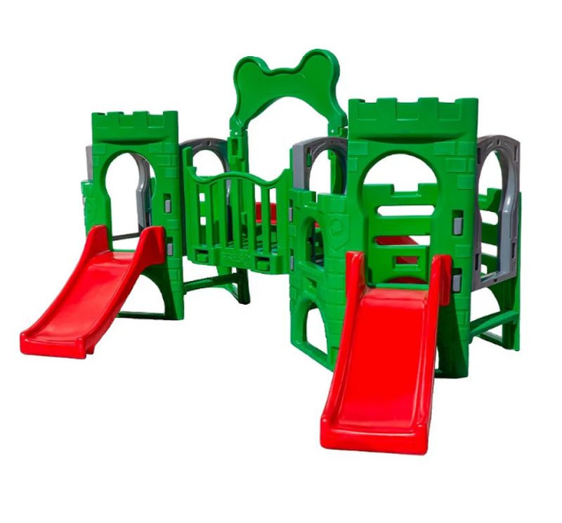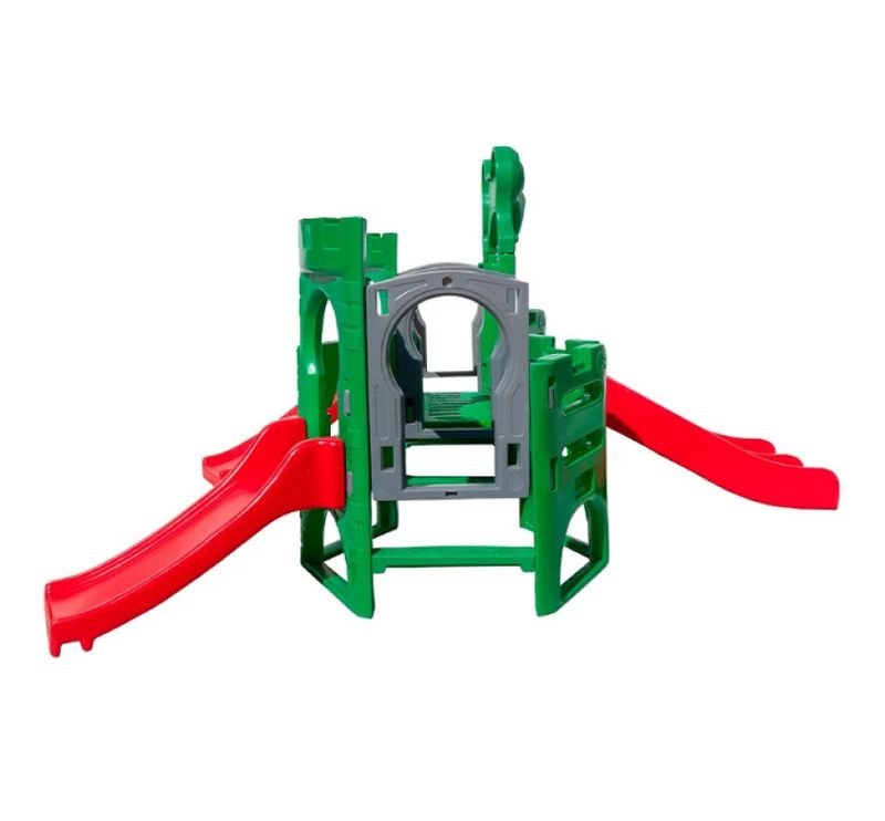 Características do Playground Play Sapinho com Escorregador Infantil:Cor Verde, Vermelho e CinzaMaterial Polietileno RotomoldadoIdade Recomendada 1 a 8 anosDimensões do Produto (C x L x A) 400cm x 362cm x 182CmRecomendação de Superfície Bases térreas planasNecessário Montagem Sim Garantia 1 Ano