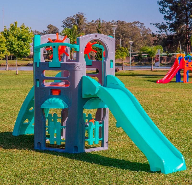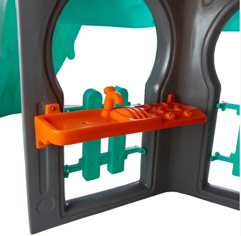 Produto vai para fabricação após o pedido( prazo de fabricação 40 dias uteis ) Playground Blue Spring com Escorregador Infantil sem TelhadinhoQuem nunca imaginou ter seu próprio playground em seu próprio quintal ou dentro de casa? O incrível Playground Blue Spring com rampa de escalada e escorregador Infantil é a melhor opção para inovar na hora de brincar e gastar energia da criançada. Com formato lúdico e com as cores da primavera, o Blue Spring possui na parte de baixo acessórios que simulam uma pequena cozinha com Pia, portinha vai e vem para criança entrar e sair e ainda conta com 4 cerquinhas super estilosas para fechar o ambiente. Além disso, para estimular a atividade física e diversão dos pequenos, para subir no Playground a rampa de escalada possui orifícios vazados para o apoio dos pés com passagem para uma criança por vez, dois lemes para brincar de capitão e um incrível escorregador reto para completar.É diversão garantida! Ideal para ambientes internos e externos, este playground garante a diversão de meninos e meninas. Seu material é altamente resistente e seguro, com cantos arredondados e proteção UV. O Blue Spring possui design exclusivo e seguro para garantir anos de diversão e entretenimento infantil. Feitos em plástico rotomoldado, os produtos são ideais para uso intenso e coletivo. Mesmo expostos ao tempo, sua durabilidade é superior a 10 anos. É garantia de durabilidade, qualidade e de fácil limpeza. Produto em edição limitada, design exclusivo e com o conhecido padrão de qualidade. Principais Benefícios do Playground Blue Spring Pode ser utilizada em ambientes internos ou exposto ao tempo, material altamente resistente, não racha e não desbota; Produto disponível por tempo limitado; Playground divertido e de fácil instalação; 2 Lemes de marinheiro para estimular a brincadeira de capitão; 1 Kit Play House com pia, fogão, escorredor de pratos para simular uma pequena cozinha; Telhadinho Freso, para proteger as crianças do tempo; Polietileno Pigmentado, com aditivo UV que garante a coloração original mesmo que exposto ao tempo. Composição do Blue Spring sem telhadinho Polietileno de média densidade (material não tóxico e reciclável). Polietileno pigmentado (colorido), com aditivo UV que garante a coloração original mesmo que exposto ao tempo.O Playground Blue Spring Contém 1 Plataforma sextavada com drenos para evitar o acúmulo de Água 1 Rampa de escalada com orifícios vazados para apoio dos pés e espaço para passagem de apenas 1 criança por vez (segurança) 1 escorregador reto 2 arcos de proteção com 2 peças de fechamento horizontal em cada arco 2 paredes com arco de proteção acoplado e orifícios inferiores de entrada/saída 2 guarda-corpos com timão acoplado em cada um Locais próprios para fixação no piso, se necessário 1 Kit Play House (1 Pia, 1 Portinha vai-e-vem, 4 cerquinhas, 4 toldinhos acoplados na parte de baixo do módulo)Caracteristicas do Playground Blue Spring com Escorregador InfantilCor Verde Água, Laranja, CinzaMaterial Polietileno RotomoldadoIdade Recomendada 1 a 12+ AnosCertificado INMETRO SimDimensões do Produto (C x L x A) 370cm x 150cm x 220cmGarantia: 12 meses