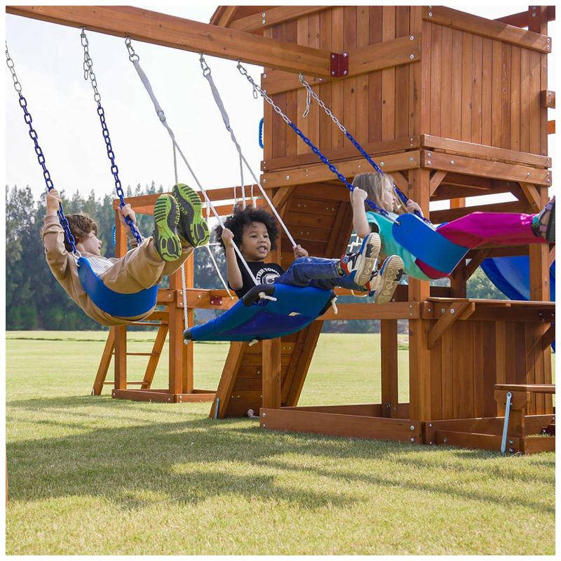 Madeira Cedro Premium: Fabricado com madeira de cedro de alta qualidade, o playground é resistente à água, corrosão e rachaduras, adequado para todas as condições climáticas. Antes de comprar, verifique se seu quintal acomoda o produto.