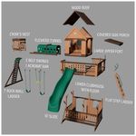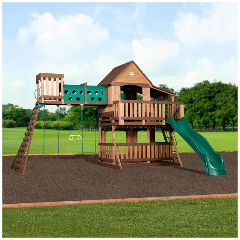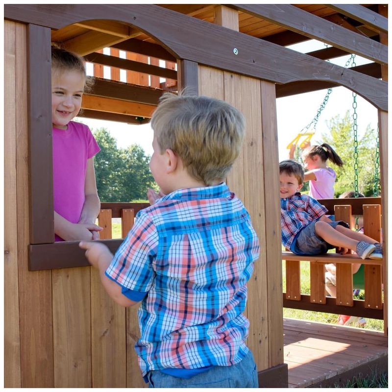 O Woodridge Elite é um dos nossos campeões de vendas, projetado para oferecer diversão sem limites com seu nível superior amplo e forte inferior expansivo. Este conjunto de playground combina áreas de brincar, escalar, deslizar e descansar em um único produto. Com um clube elevado, varanda lateral coberta com área de caixa de areia, túnel elevado e ninho de corvo, as crianças terão um espaço completo para aventuras e exploração.