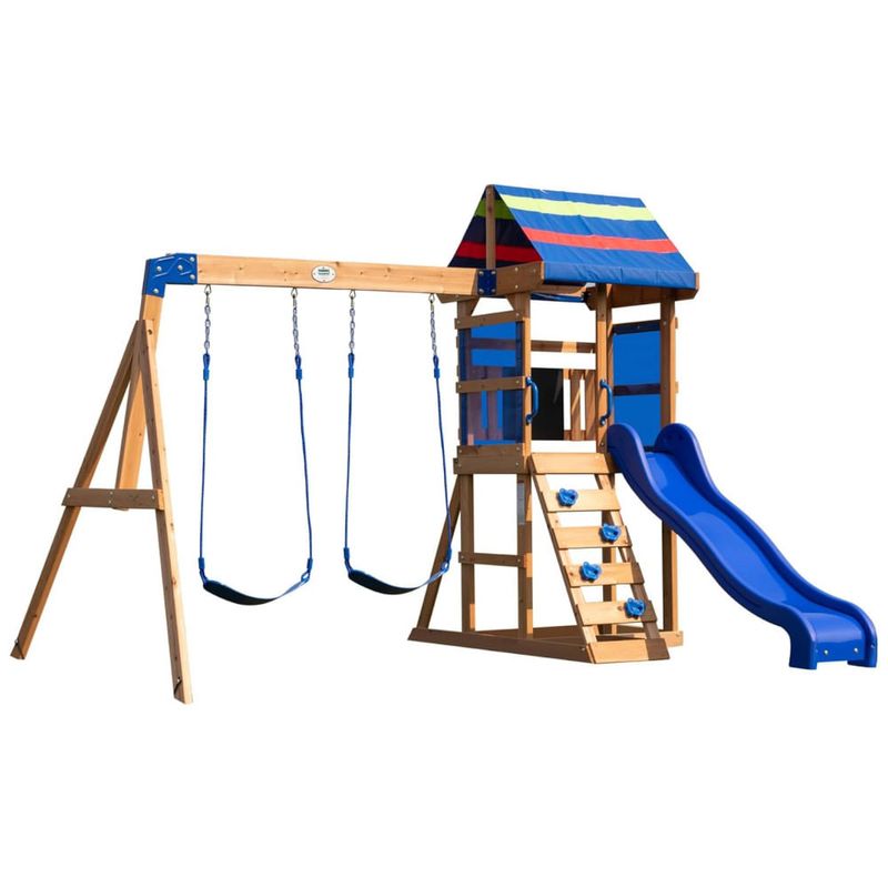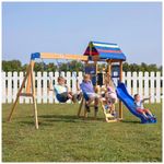 Se seus pequenos estão procurando uma aventura de playground no quintal, o balanço de madeira Bay Pointe da Backyard Discovery é a escolha perfeita! Compacto em tamanho, mas grande em diversão, este conjunto é ideal para crianças de 3 a 6 anos que querem se divertir balançando nos balanços de cinto ou descendo rapidamente pelo escorregador rápido de 1,83 metros (6 pés).