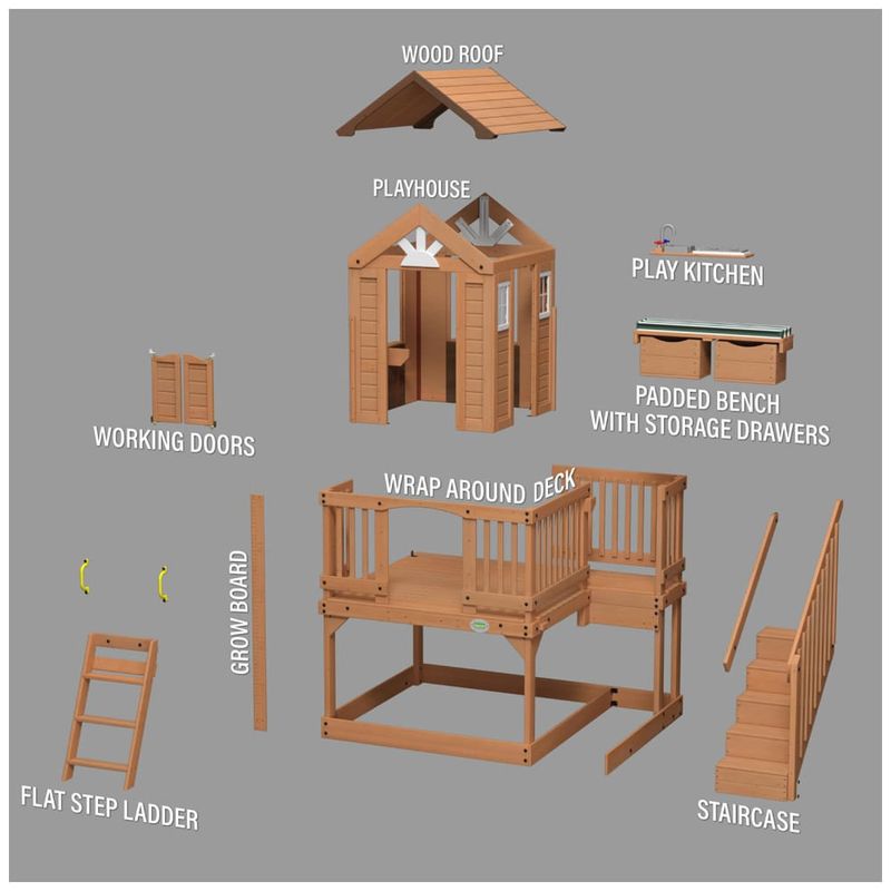 A Casa de Brinquedo de Cedro Scenic Heights é a escolha perfeita para as crianças que adoram brincar de casinha. Feita em madeira de cedro, ela conta com diversos detalhes que tornam a brincadeira ainda mais divertida e completa. A casa possui: