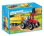 Se você só precisa do trator, basta remover o reboque do engate traseiro e deixá-lo para trás enquanto você dirige pelos campos. A pá inclinada pode colher fardos de feno e levantá-lo para transportá-lo para um novo local. O conjunto inclui uma figura, trator e reboque, fardos de feno, pá e outros acessórios. Recomendado para idades de quatro anos ou mais.