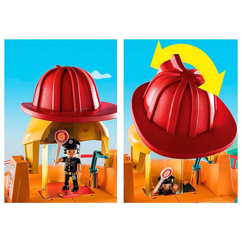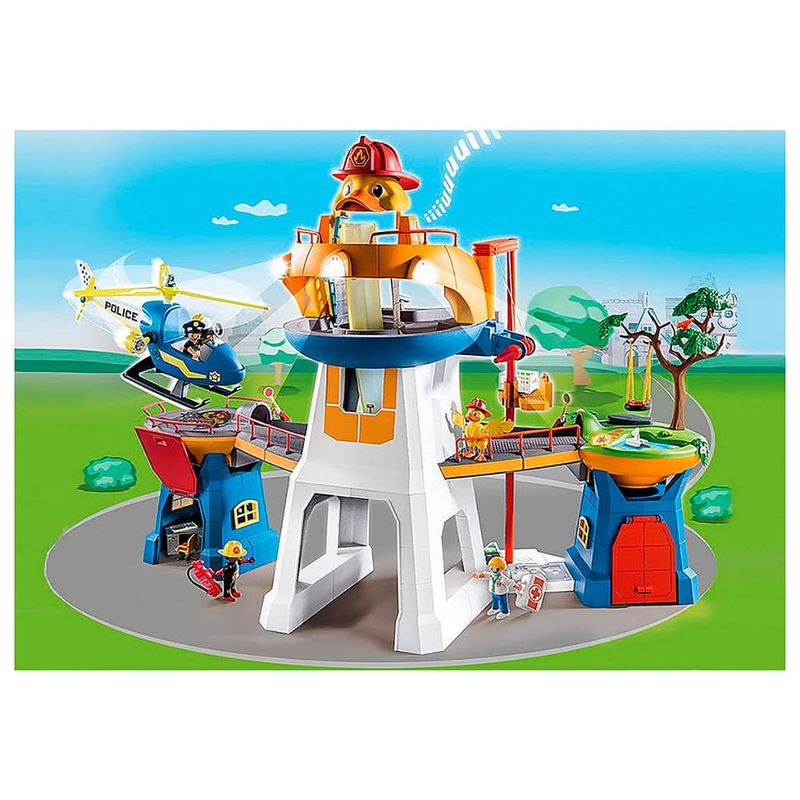 A equipe de resgate está pronta para qualquer emergência quando o alarme é acionado. Cada um dos heróis de resgate pode descer o escorregador para atender a chamada e seguir seu caminho. Polly leva a manivela retrátil para o heliporto e decola no helicóptero da polícia com as luzes de emergência funcionando. O centro de comando está localizado na torre e permite que o esquadrão se comunique entre si durante a missão. Uma vez que todos tenham retornado em segurança, os quatro heróis relaxam perto da árvore e brincam no balanço do pneu.