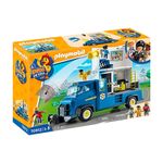 Alarme para a polícia! Luzes e sirenes em funcionamento alertam a comunidade de que a polícia está a caminho. Assim que um bandido é avistado em Playmoville, Polly entra em ação com seu impressionante caminhão policial. No centro de controle da missão, Ducklas consegue rastrear o encrenqueiro com facilidade. Com a arma de rede, Ducklas o captura de vez. Agora, o bandido vai para a cela da prisão. Mas o que é isso? O vilão está mexendo na porta gradeada! Ele consegue escapar novamente. Porém, Ducklas e Polly formam uma excelente dupla e recapturam o fugitivo em pouco tempo. Ninguém escapa dessa dupla! O conjunto apresenta os heróis PLAYMOBIL D.O.C. Ducklas e Polly Police, um grande caminhão policial com cela de prisão (incluindo opção de fuga), centro de monitoramento de operações e arma de rede. Conteúdo da embalagem: 1 Ducklas, 1 Polly Police, 1 vilão, 1 caminhão da polícia com módulo de luz e som e contêiner articulado incluindo cela com parede traseira removível, guincho, posto de comando e arma de rede mais rede, 1 escada, 1 assento giratório, 1 cartão de índice, 1 rádio, 1 lanterna, 1 grupo de chaves, 1 microfone, 1 lata de spray.