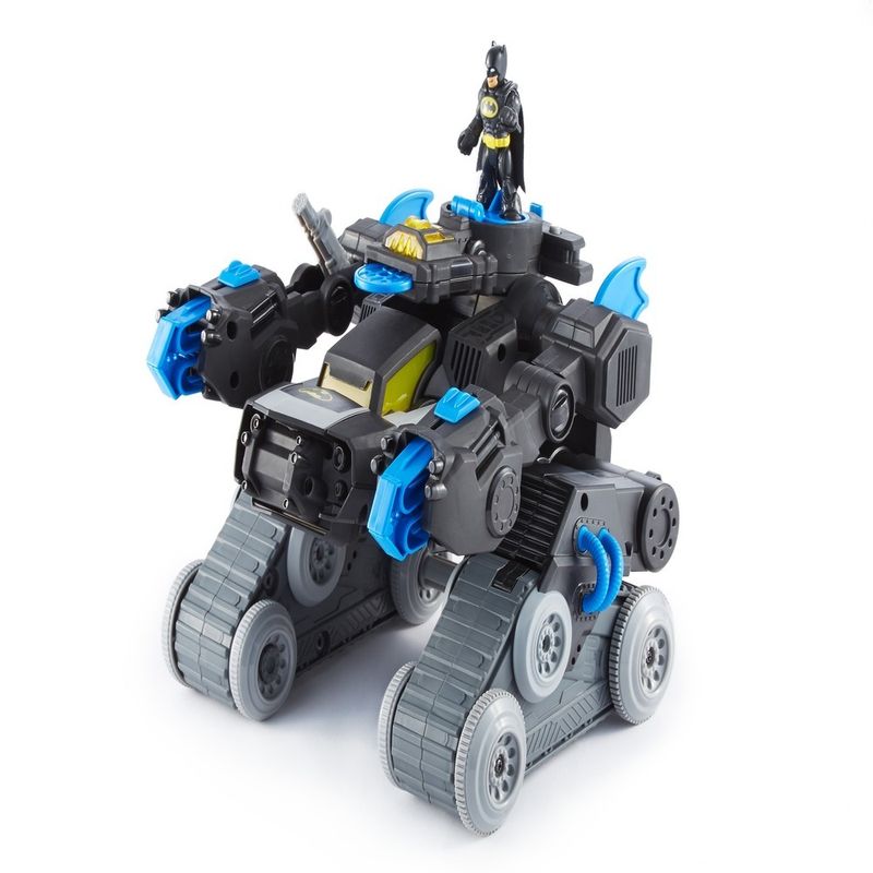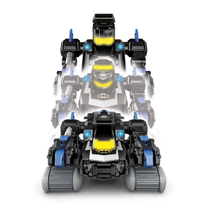 Os pequenos super-heróis terão diversão em DOSE DUPLA com um robô e um tanque num só brinquedo! Esse robô de combate ao crime se transforma num incrível tanque blindado e para que volte ao normal, gire o disco no Batbot ou use o controle remoto completo. Além de uma transformação incrível, as crianças podem continuar a ação ativando a garra ou lançando discos em seus vilões de Gotham City favoritos! (Vilões vendidos separadamente.) Luzes e efeitos sonoros ajudam a criar novas aventuras a cada brincadeira!
