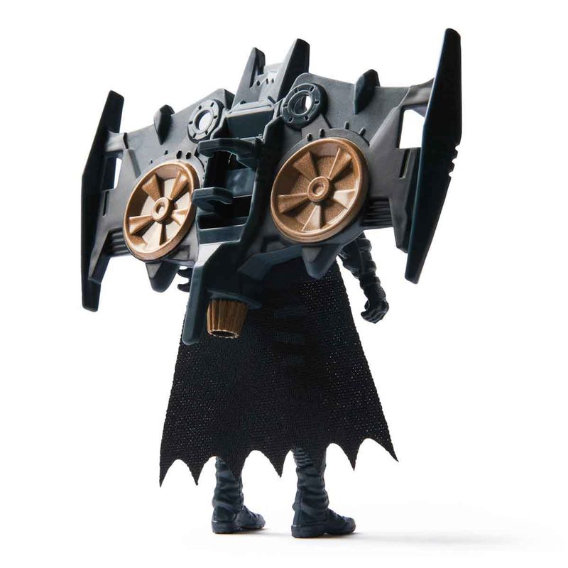 Conteúdo da embalagem: 1 Batglider (Asa Delta), 1 Boneco Batman, 2 Projéteis, 1 Batmóvel Transformável, 2 Tirolesas, 1 Folha de Instruções e 1 Folha de Adesivos