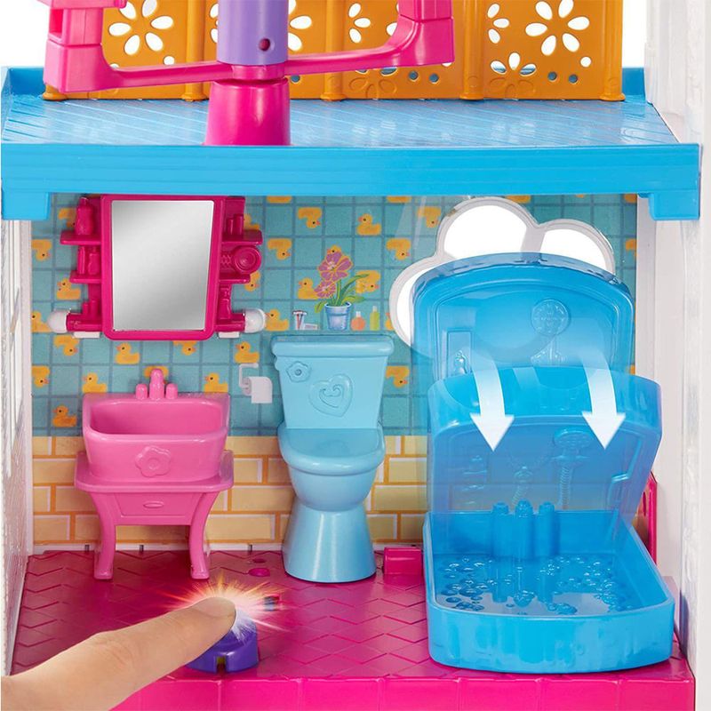 Completo com boneca Polly e roupas intercambiáveis, este impressionante brinquedo apresenta oito espaços de jogo únicos que se transformam em 13 espaços para a melhor festa de todas. Somente no incrível mundo da boneca Polly, um banheiro pode se tornar uma festa de SPA, uma sala de jantar em um bar de smoothies e uma cozinha prepara o palco para uma festa de aniversário, tudo com o simples toque do botão. O melhor de tudo é que os móveis e acessórios combinam com o tema de cada sala para expandir as possibilidades de contar histórias. Coloque a boneca Polly no elevador central e observe-a girando de alto a baixo, guiando gentilmente a plataforma. A festa continua do lado de fora, onde a boneca e amiga da Polly (vendida separadamente) pode dar um passeio no pátio ao ar livre. Com atividades e surpresas em cada turno, as crianças têm motivos ilimitados para celebrar.