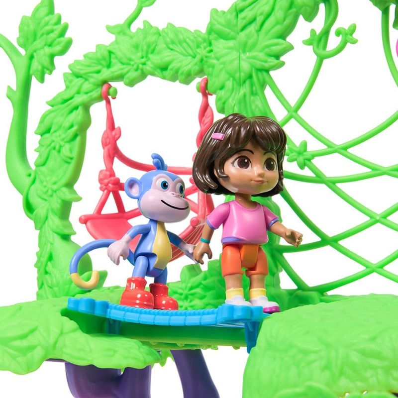 Na floresta encantada de Dora, a Aventureira, diversão e imaginação se encontram na Rainforest Casita. Este playset vibrante traz uma casinha de dois andares com cômodos detalhados, conectada a uma charmosa casa na árvore com escorregador e balanço. Sons, músicas e um espaço colorido para dançar recriam a energia alegre das aventuras da série. A casita se transforma, revelando novas possibilidades de brincadeira. As figuras podem se pendurar pelos galhos, explorando cada cantinho. Acompanha 2 personagens, 8 acessórios, 1 cartinha, adesivos e manual. Figuras adicionais vendidas separadam