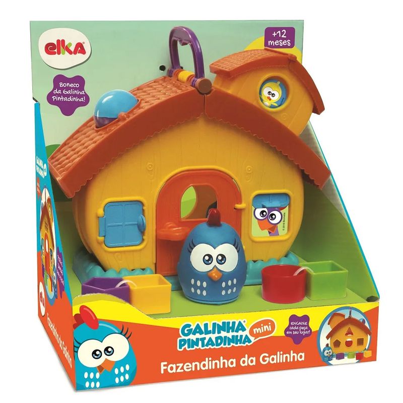 A Fazendinha de atividades da Galinha Pintadinha mede aproximadamente 19 centímetros de altura e vem com 01 Fazendinha, 01 boneco e 04 peças coloridas para encaixar e brincar.