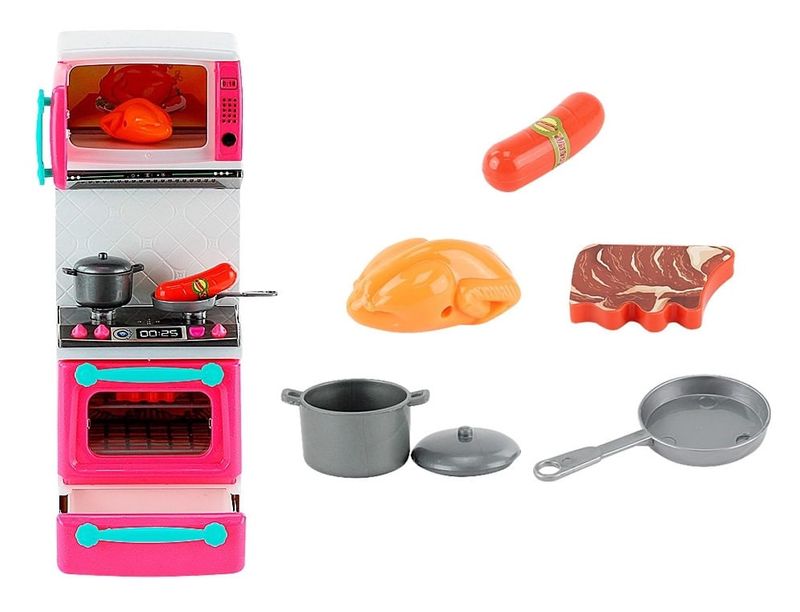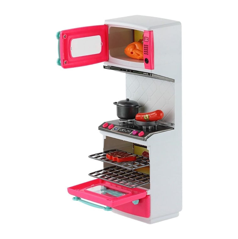 O Playset Fogão possui vários acessórios para deixar a brincadeira ainda mais realista e detalhada. Essa mini fogão, forninho e microondas é ideal para cozinhas de bonecas. Além das cores e acabamentos perfeitos, conta com vários acessórios e ainda possui som e luzes para deixar a brincadeira ainda mais divertida.
