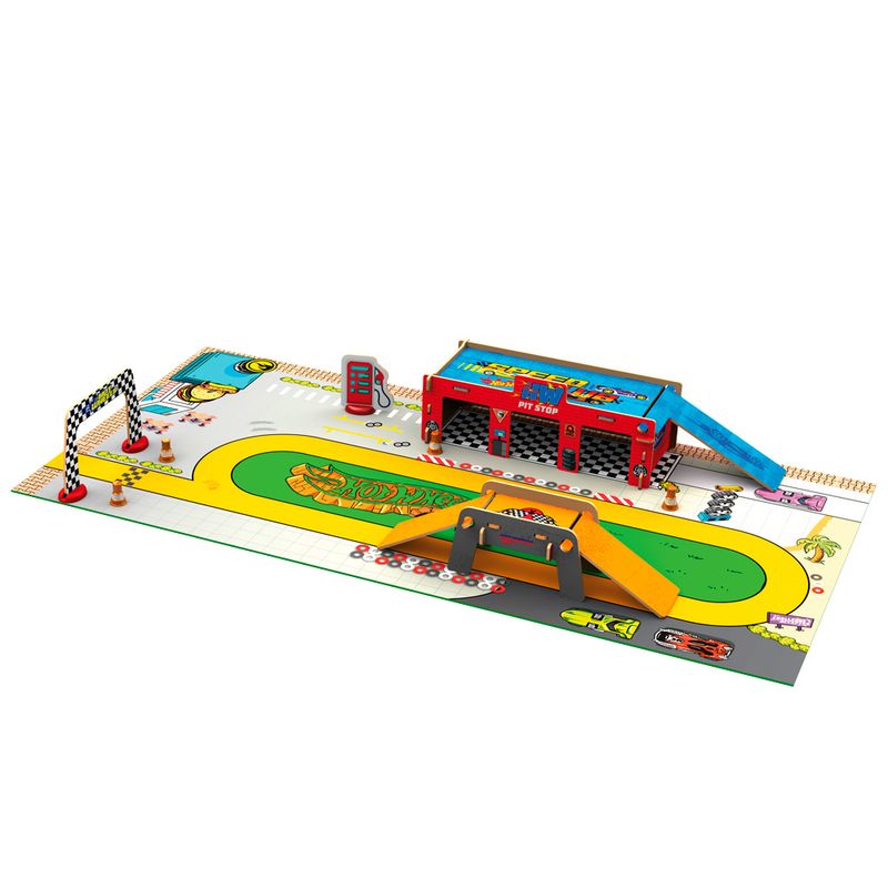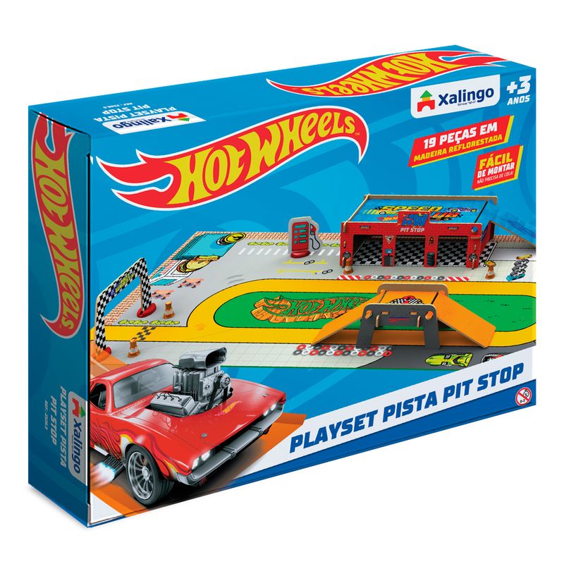 Este brinquedo possibilita a montagem de uma pista com pit stop e ponte através do encaixe de suas peças, desenvolvendo a imaginação, a criatividade, o pensamento lógico, a coordenação motora e a noção de espaço, além das habilidades de identificar, comparar e associar. Adicione o Playset Pista Pit Stop aos Playsets Hot Wheels e turbine ainda mais sua brincadeira!