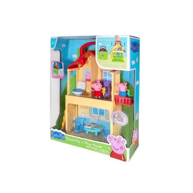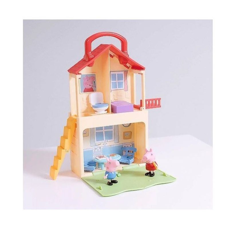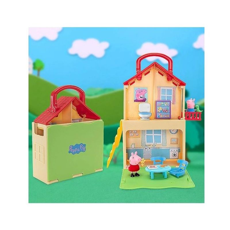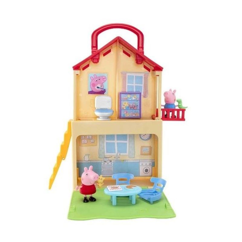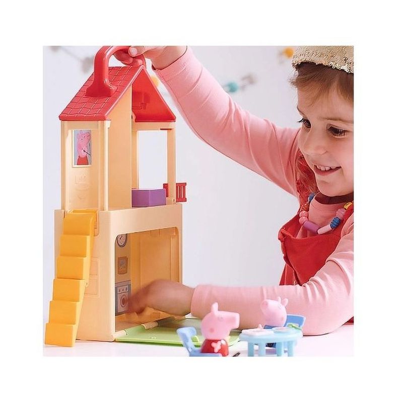 Abra a maleta para revelar a casa de 2 andares! Com o acabamento em forma de maleta, a criança pode brincar e levar a casa da Peppa para onde quiser. Inclui: 2 figuras (Peppa Pig e George) e 5 acessórios.