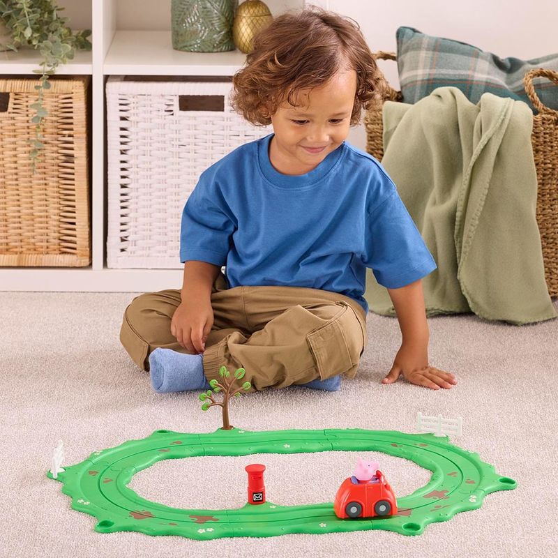No coração das aventuras de Peppa Pig Whizz Around, o playset Peppa’s Little Red Car Set Whizz-Around transforma cada momento em uma jornada cheia de diversão e imaginação. Com o icônico carro vermelho da Peppa, pistas que se encaixam para criar caminhos repletos de curvas e surpresas, cercas, árvore e uma caixa de correio, este conjunto cria um cenário encantador onde histórias ganham vida. Cada detalhe convida a explorar mundos repletos de risadas, amizades e descobertas, trazendo para dentro de casa a magia das histórias que encantam gerações