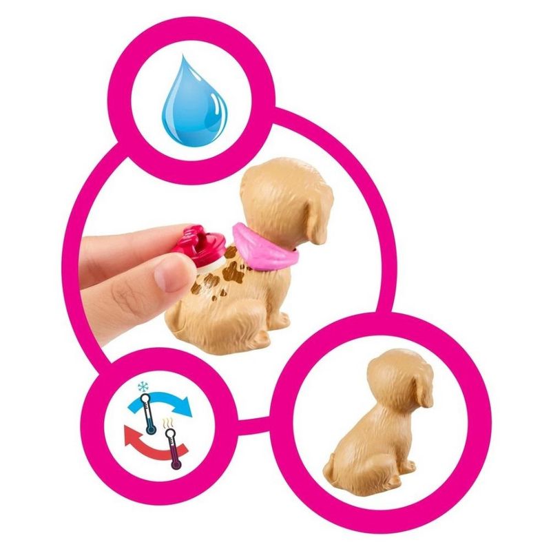 O Playset Pet Shop da Barbie Mattel com Boneca GRG90 oferece tudo o que é preciso para ajudar a boneca Barbie a cuidar dos seus bichinhos! Ele inspira histórias de cuidado e amizade e conta com uma estação de cuidados, balcão de pagamento, estante com prateleiras e mais de 20 peças temáticas. Para ajudar a Barbie a dar banho no cachorrinho, vire o balcão de pagamento para cima e veja uma estação de cuidados, encha o lavatório com água fria e coloque o cachorrinho no interior: vão aparecer manchas de lama! Mergulhe a esponja (inclusa) na água morna e ajude-a a lavá-lo: veja as manchas de lama desaparecerem. Depois de terminar o banho, a Barbie® pode comprar petiscos e brinquedos ou adotar um novo amigo.