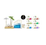 A praia é o nosso playground na Pacific Coast, a escola secundária de artes plásticas de elite da costa oeste. Aqui os dias são de sol e as aulas são à beira da piscina. Traga suas bonecas da moda Rainbow High Pacific Coast para o conjunto de piscina mais legal que estimula a imaginação e a diversão de contar histórias. Eles podem relaxar à beira da piscina, relaxar no bar de sucos ou dar um mergulho na piscina que muda de cor 7 em 1. Fácil de operar - basta enchê-lo com água e pressionar o botão para selecionar a cor da piscina (transparente, vermelho, laranja, amarelo, verde, azul ou roxo). Requer: 3 baterias AA (Não Incluidas).