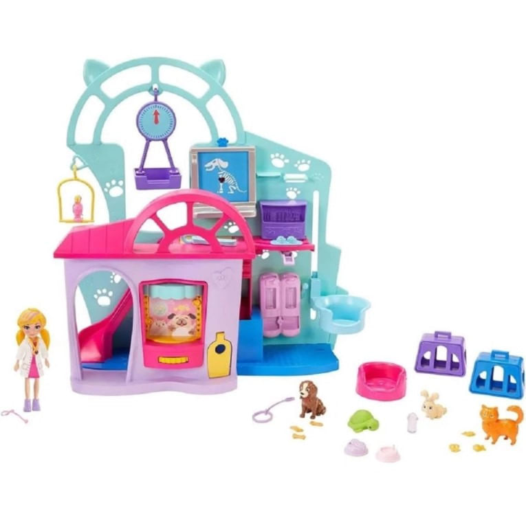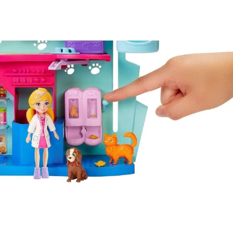 Conteúdo da Embalagem: 1 Playset, 1 Polly Pocket Médica Veterinária, 5 Animais e Acessórios