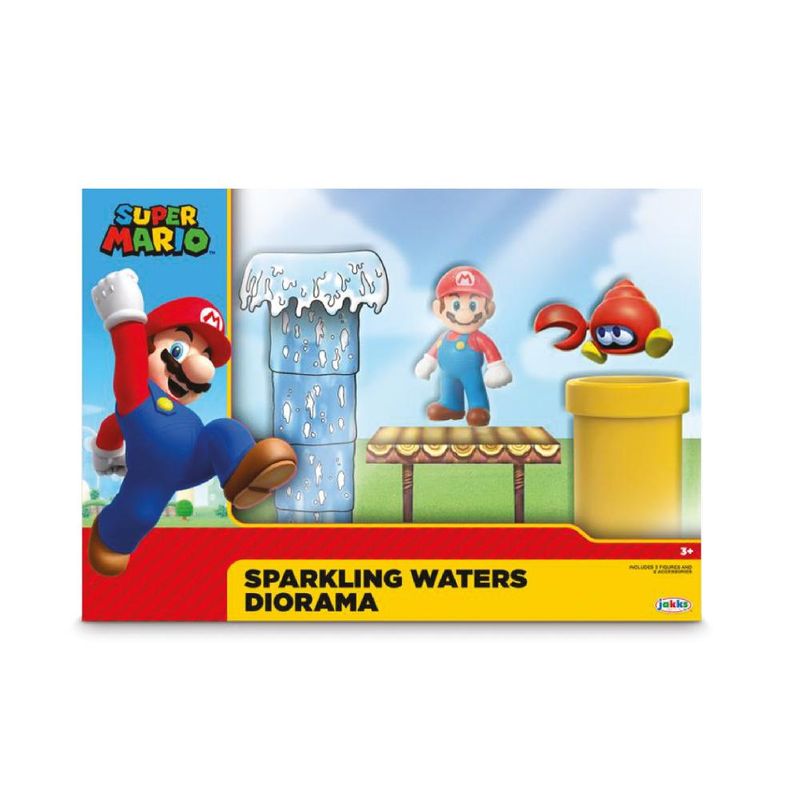 O Sparkling Waters Diorama Set permite que você se imagine e sinta a emoção de jogar o jogo! Ele é um incrível cenário com detalhes iguais ao jogo e cinco peças interativas. A brincadeira vai ficar mais divertida com o Sparkling Waters Diorama Set do Super Mario e você ainda pode juntar a outros Playsets (vendidos separadamente) para deixar seu mundo do Mario mais completo!