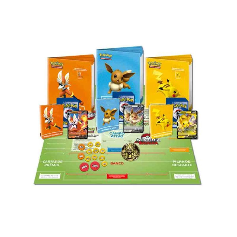 Prepare-se para uma batalha Pokémon com a Academia de Batalha do Pokémon Estampas Ilustradas!A Academia de Batalha inclui tudo que dois jogadores precisam para batalhar, inclusive um guia para cada baralho, para que seu primeiro jogo seja super fácil de jogar.