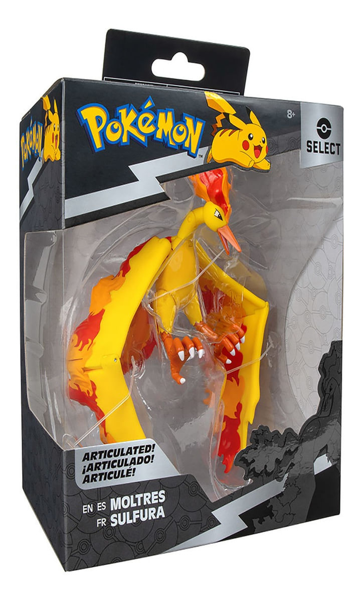 "Com mais detalhes, mais pontos de articulação e mais maneiras de brincar e exibir do que nunca, essa figura do Pókemon Moltres Super Articulada de 15cm é o complemento perfeito para qualquer equipe de treinadores Pokémon! Cada figura vem com altos níveis de detalhes e um acessório! Com detalhes